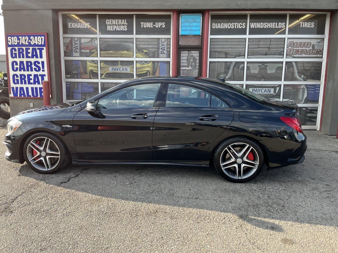 HERE IS A NICE CLEAN CLA-45 AMG THAT LOOKS AND DRIVES GREAT AND SOLD CERTIFIED IF YOU ARE LOOKING FOR LUXURY AND SPORT THIS CAR IS THE ONE. COME BY OR CALL 5195706463 FOR AN APPOINTMENT .TO SEE ALL OUR INVENTORY PLS GO TO PAYCANMOTORS.CA